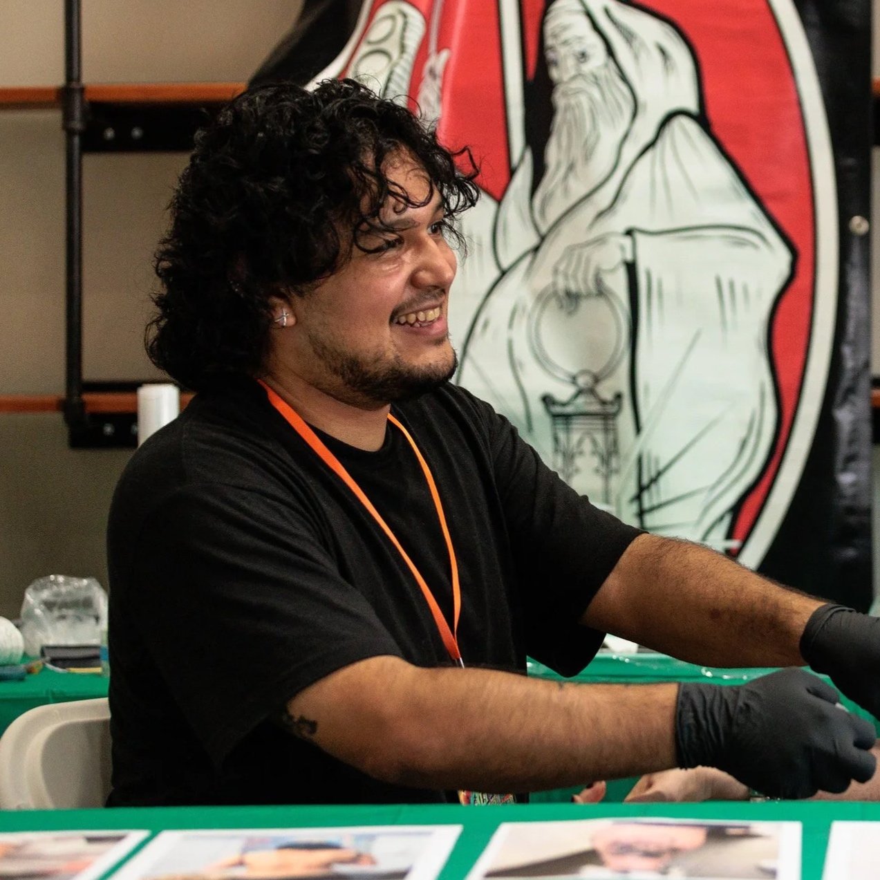 He currently tattoos at The Hermit on Saturdays and travels with the shop to conventions, bringing his work to new spaces while maintaining a consistent, thoughtful style.